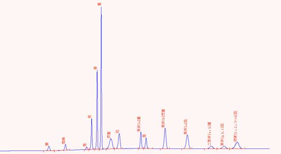 標(biāo)準(zhǔn)PAHs(純度大于96.0%)的色譜圖: