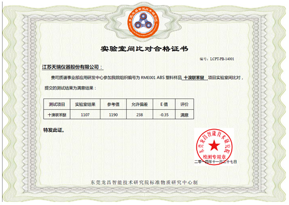 附錄3:實(shí)驗(yàn)室間比對合格證書(十溴聯(lián)苯醚)