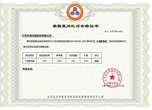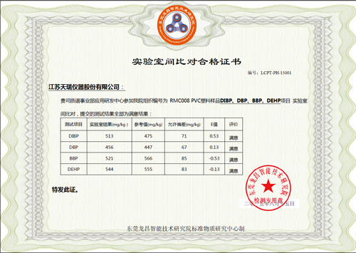 附錄1:實(shí)驗(yàn)室間比對(duì)合格證書(塑化劑)
