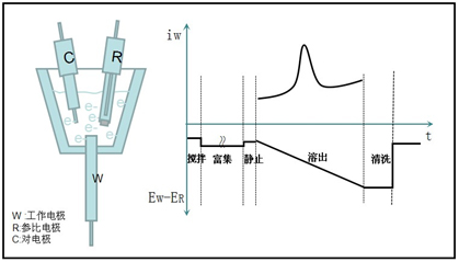 在一定的電位下,使待測(cè)金屬離子部分地還原成金屬并溶入微電極或析出于電極的表面,然后向電極施加反向電壓,使微電極上的金屬氧化而產(chǎn)生氧化電流,根據(jù)氧化過(guò)程的電流一電壓曲線進(jìn)行分析的伏安法。 陽(yáng)極溶出伏安法以其極低的成本與高靈敏度的特點(diǎn)、目前在歐美正取代傳統(tǒng)的原子吸收方法大量應(yīng)用于環(huán)境應(yīng)急監(jiān)測(cè)、自來(lái)水檢測(cè)、電鍍和表面處理行業(yè)廢水檢測(cè)、食品、制藥、醫(yī)院廢水監(jiān)測(cè)等方面。