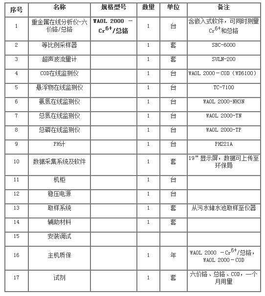 為了實(shí)現(xiàn)整體皮革及其制品業(yè)污水污染物監(jiān)測(cè)建設(shè),我們建立整體皮革及其制品業(yè)污水污染物監(jiān)測(cè)系統(tǒng),具體系統(tǒng)配置如下: