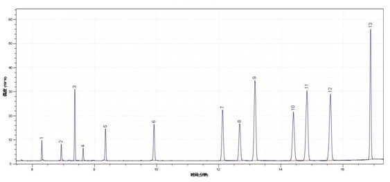 圖2 13種有機氯標(biāo)準(zhǔn)溶液TIC圖